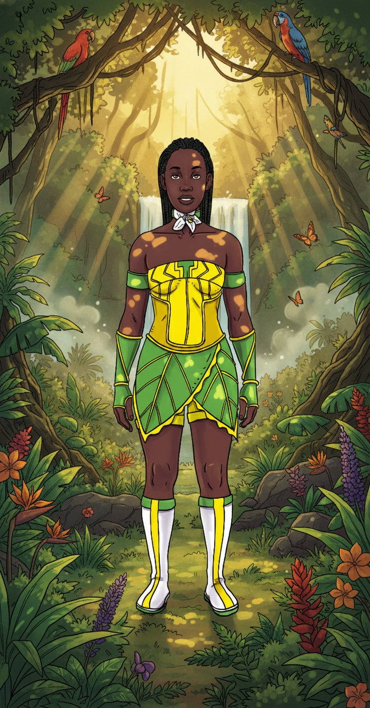 Born in the lush heart of Haiti, Tanama is more than a superhero, she’s a living symbol of hope, culture, and environmental renewal.