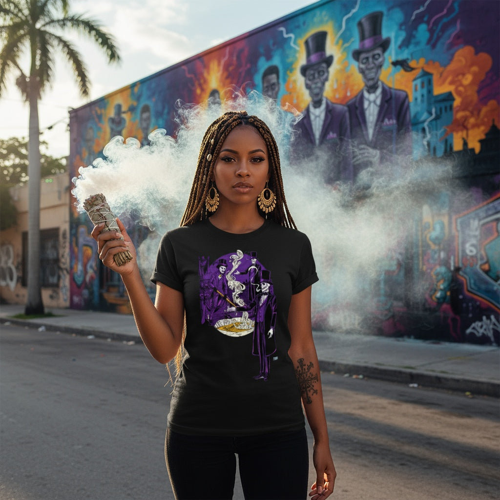 Crafted for the diaspora and those who carry Haiti in their heart, this drop blends ancestral energy with streetwear flair. Featuring rich symbolism, bold colors (Royal Purple, Bone White, Sacred Black, Sun Gold), and exclusive art elements derived from a single master illustration, each item is a collector’s tribute to the Gede spirit and Haitian resilience.